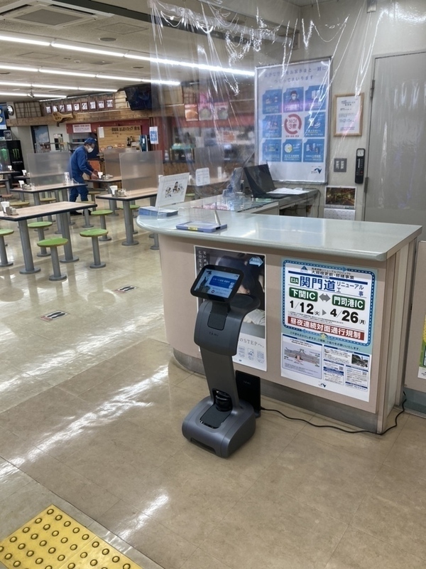 名神高速道路/山陽自動車道のサービスエリアではご案内係ロボット「temi」が2021年3月より試験運用中。タッチパネルを通じて立ち寄った利用者が道路情報や観光案内の質問をすると、遠隔でオペレーターが質問に答えてくれる。人と人が対面接触する機