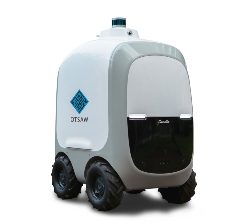 "Camello" is delivering a parcel. A one-year pilot program of on-demand delivery has been conducted at an apartment complex in Punggol, Singapore, starting in February 2021. (Nov 2022)