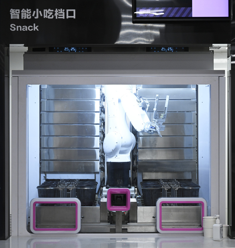 Came across the robot demonstration at the neighboring station making pasta (Winter 2019). The robot arm put a paper bowl with short pasta into the microwave, took it out, poured the source, and served it in front of me. The whole operation